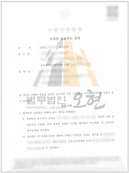 본 사건은 단순한 보증금 분쟁이 아니라,임대차계약 명의와 실지금 납부자 간의 불일치, 재산분할 이행 과정에서 나타난 이해 충돌이 핵심이었습니다.본 법무법인은 임대차보증금 납부 내역, 공과금 및 관리비의 지속적인 납부자, 주거 실사용 여부 등 실질관계를 입증하였고,상대방에게 소송 장기화의 부담과 조정의 유리함을 설득하였습니다.