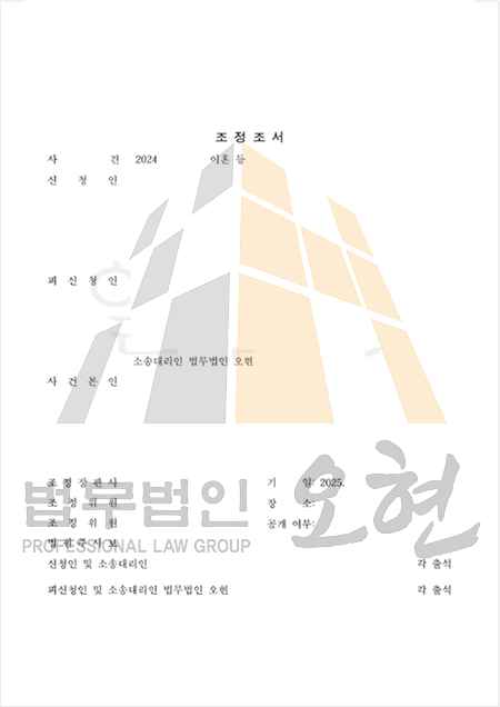법원 조정절차를 통해, 상대방의 재산분할 청구를 모두 포기하는 대신 의뢰인은 소액의 일시금을 지급하는 방식으로 분쟁을 일괄 정리하였습니다.해당 조정에는 '이후 어떠한 재산·위자료 청구도 하지 않기로 한다'는 내용이 명시되어, 향후 분쟁 가능성도 완전히 차단되었습니다.
