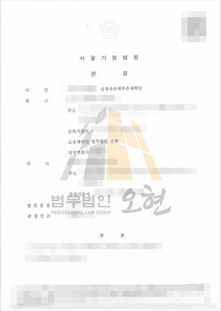 법원은 본 법인의 입증을 받아들여 “원고와 피고 사이에는 친생자관계가 존재하지 아니함을 확인한다”는 판결을 선고했습니다.판결 확정과 동시에 의뢰인은 가족관계등록부 정정 절차를 개시할 수 있게 되었고, 이후 생부 확인과 향후 상속·연명치료·신분관계 연계 절차 등의 리스크를 제거할 수 있었습니다.소송비용은 각자 부담으로 정리돼 추가적인 비용 부담 역시 발생하지 않았습니다.