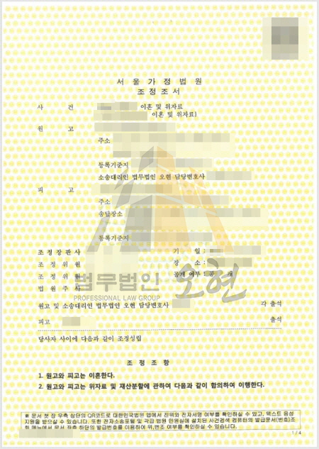• 위자료 청구 상호 포기 또한 조정문에 “향후 재산 변동과 무관하게 상호 청구 불가”라는 문구를 삽입해, 재산 증가 또는 감소가 나중에 다시 분쟁으로 이어지지 않도록 차단했습니다.
