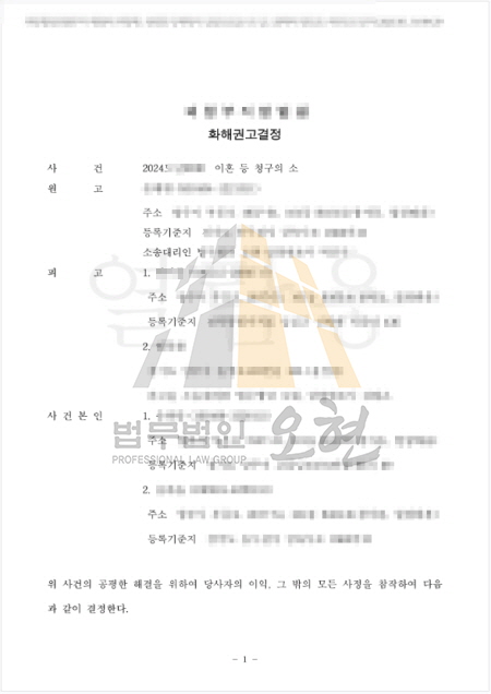 법원 조정으로 총 2천만 원 지급(의뢰인 1,200만 원 / 상대 남성 800만 원),양육비 월 30만 원, 협박성 연락 및 SNS 언급 금지 조항, 추가 손해배상 청구 금지 조항까지 포함된 조정조서가 확정되었습니다.