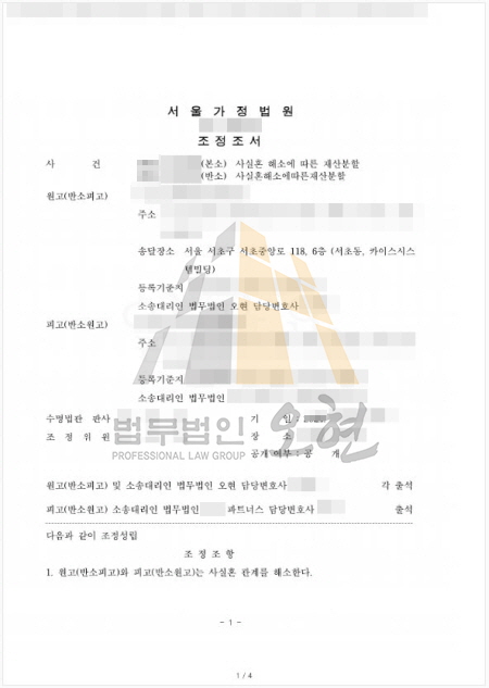 [조정성립] 이혼 등│feat. 사실혼 파기 후 상호 고액 자산 분쟁, 6,500만 원 지급 조정 성립 사건