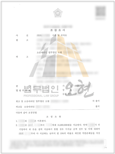- 조정 성립을 통해 이혼 및 위자료 1,500만 원 수령