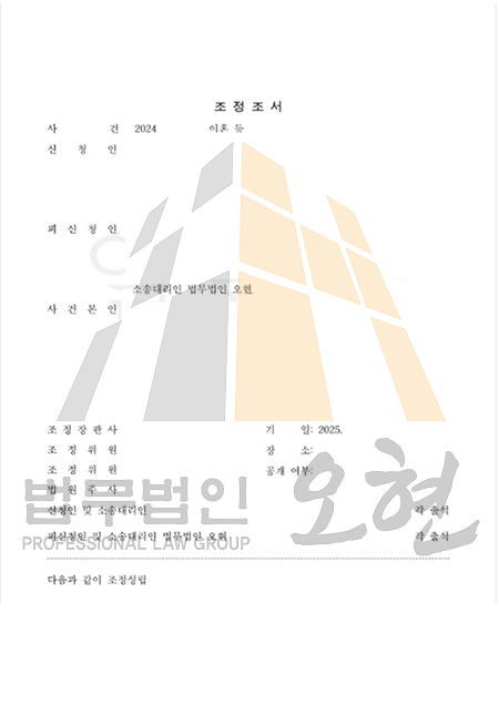 저희 법무법인은 위자료 쟁점이 본격적으로 판단되기 전에 조정을 통해 사건을 종결짓는 전략을 세웠고,특히 재산분할 내역을 구조화하여 상대방이 실익을 빠르게 확보할 수 있는 방안을 제시함으로써 위자료 청구 포기를 유도했습니다.