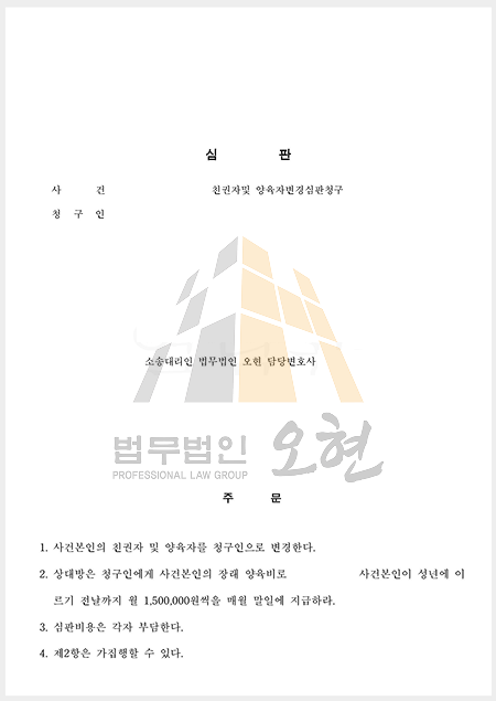 법무법인 오현의 치밀한 변론 결과, 법원은 자녀의 안전과 복리를 위해 양육자 변경이 반드시 필요하다고 판단하였습니다.