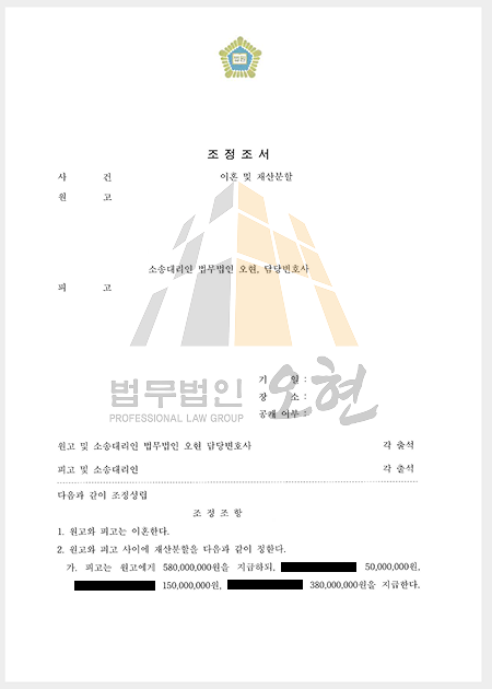 [조정성립] 이혼·재산분할│남편의 장기 부정행위와 교묘한 재산 은닉 시도를 극복하고, 5억 8,000만 원의 재산분할금을 확보한 황혼이혼 사례