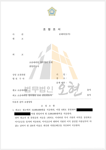 법무법인 오현은 조정 절차에서 원고 측을 끈질기게 설득하였습니다. 그 결과, 재판부는 오현의 주장을 일부 수용하여 다음과 같이 조정 성립을 결정했습니다.