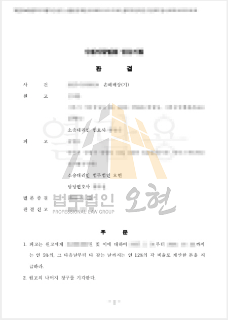 • 민법 제750조(불법행위의 내용) 고의 또는 과실로 인한 위법행위로 타인에게 손해를 가한 자는 그 손해를 배상할 책임이 있다. ※본 업무사례는 법무법인 오현의 실제 업무 사례입니다.
