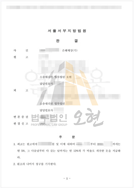 민법 제750조(불법행위의 내용) 고의 또는 과실로 인한 위법행위로 타인에게 손해를 가한 자는 그 손해를 배상할 책임이 있다. ※본 업무사례는 법무법인 오현의 실제 업무 사례입니다.